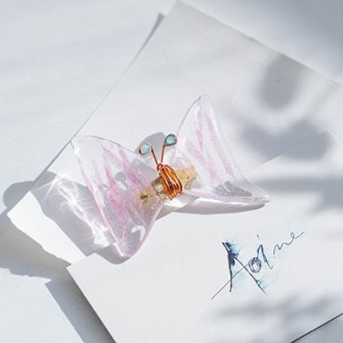 樹脂に特殊加工施し直接絵の具で着色しています。