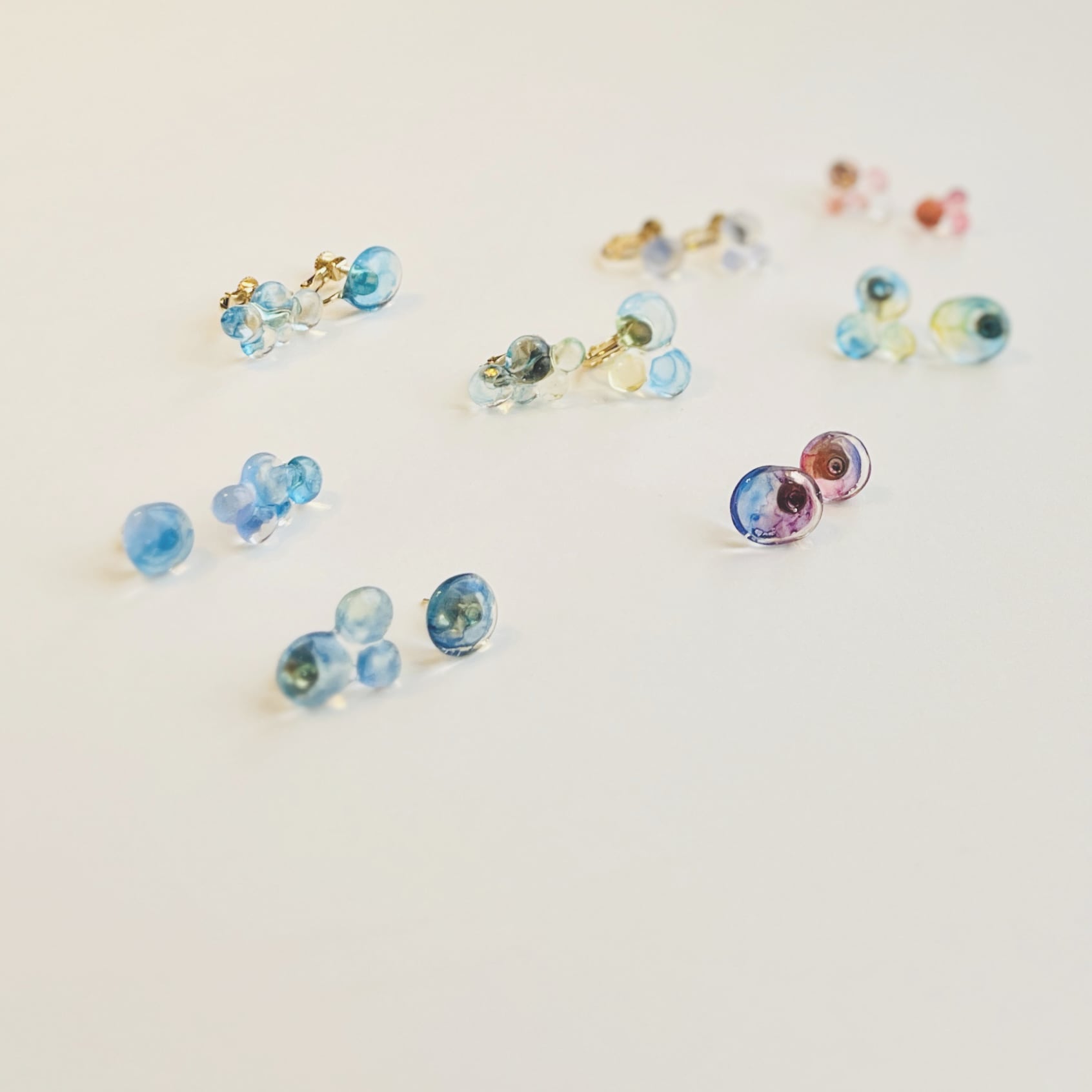 水を含んだ絵の具がコロコロと紙の上で踊る光景がとても美しいのでそのまま耳飾りにしてみました。